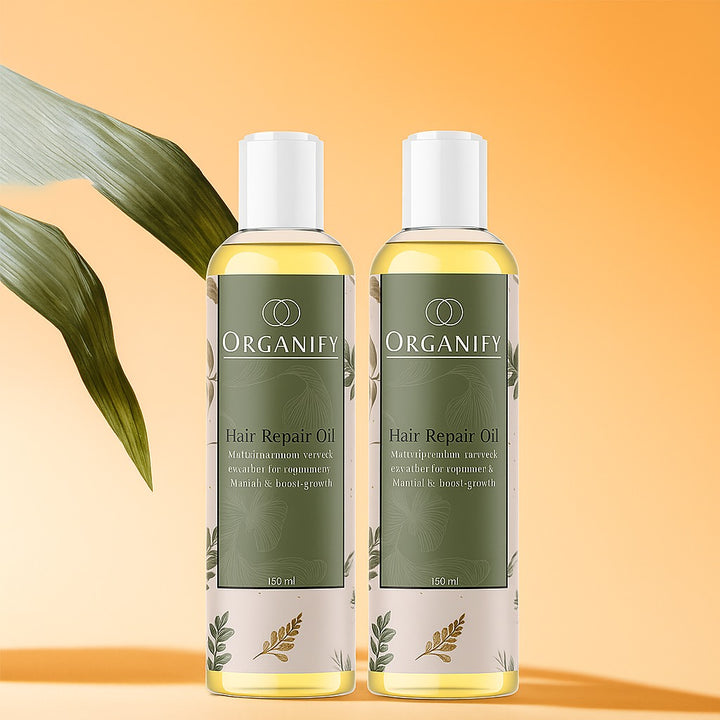 Revitalize your hair with our 100% Organic Hair Repair Oil, a potent blend designed to combat hair fall, stimulate growth, and restore vitality. Infused with natural botanicals, this oil deeply nourishes the scalp and hair, leaving it stronger, shinier, and healthier.