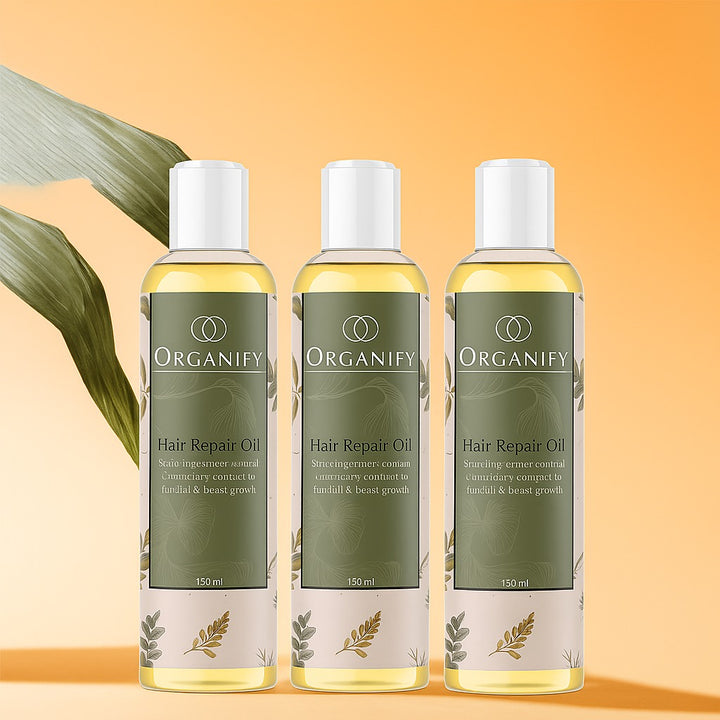 Revitalize your hair with our 100% Organic Hair Repair Oil, a potent blend designed to combat hair fall, stimulate growth, and restore vitality. Infused with natural botanicals, this oil deeply nourishes the scalp and hair, leaving it stronger, shinier, and healthier.